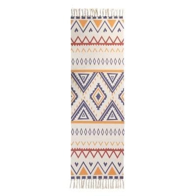Deze lange loper is meer dan zomaar een vloerkleed; het is een statement piece. Denk je eens in hoe deze loper je entreehal transformeert, een plek die vaak over het hoofd wordt gezien. Het is het eerste wat jij en je gasten zien, en het zet direct de toon voor de rest van je huis. Het levendige patroon nodigt uit tot binnenkomst en geeft direct een gevoel van comfort en stijl. Stel je voor hoe het zachte katoen aanvoelt onder je voeten na een lange dag, en hoe de warme kleuren je interieur opvrolijken.