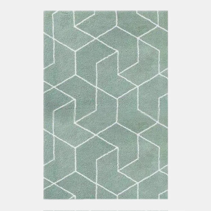Kenmerken van ons Zeegroen Shaggy Vloerkleed met Geometrisch Patroon: